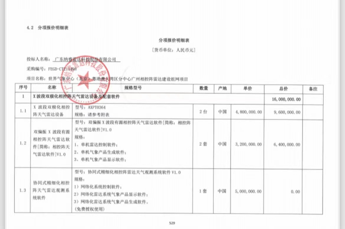 合同包1(世界氣象中心(北京)粵港澳大灣區(qū)分中心廣州相控陣?yán)走_(dá)建設(shè)組網(wǎng)項(xiàng)目):